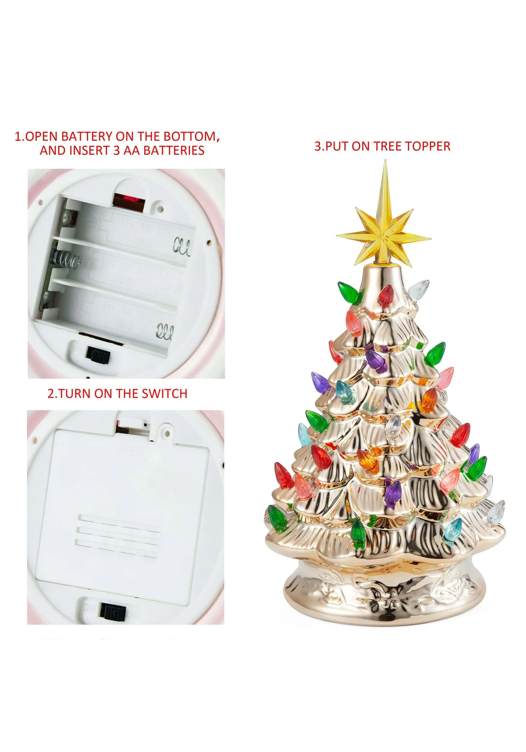 This is a 12″ Gold Ceramic Christmas Tree.