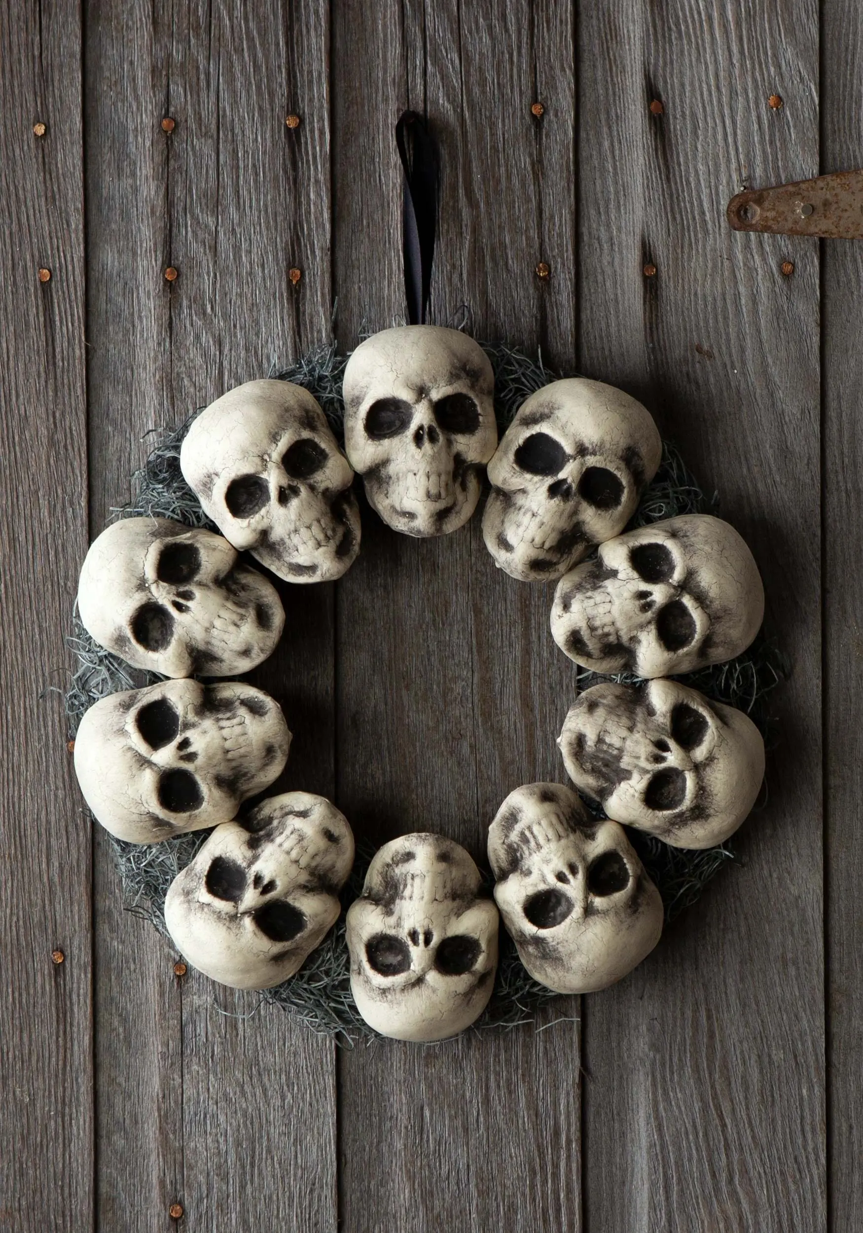 - Super Moss adorns the wreath and realistically painted skulls attached atop