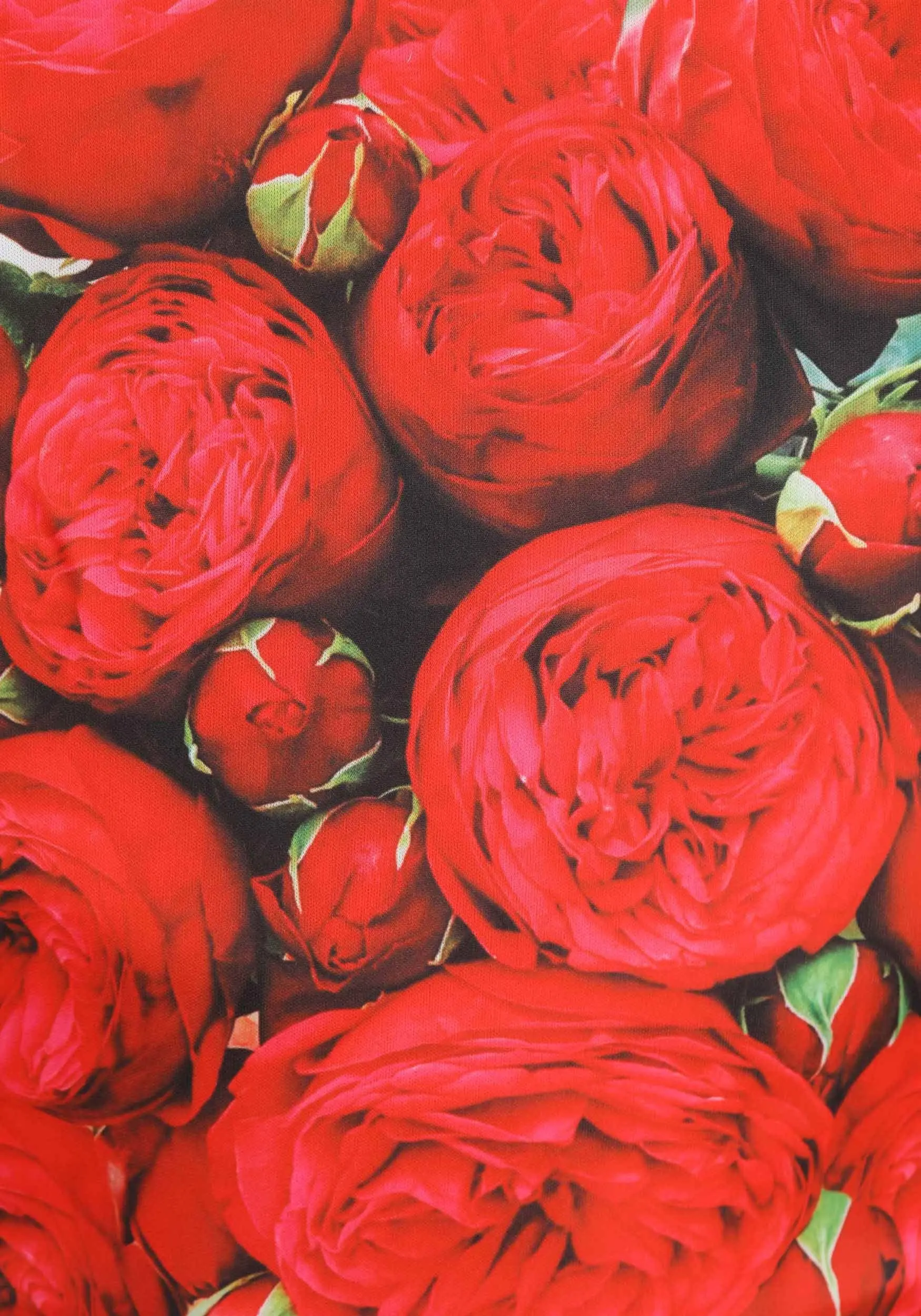 - Foam-backed front panel has printed bouquet of roses wrapped in a paper cone and tied with a ribbon