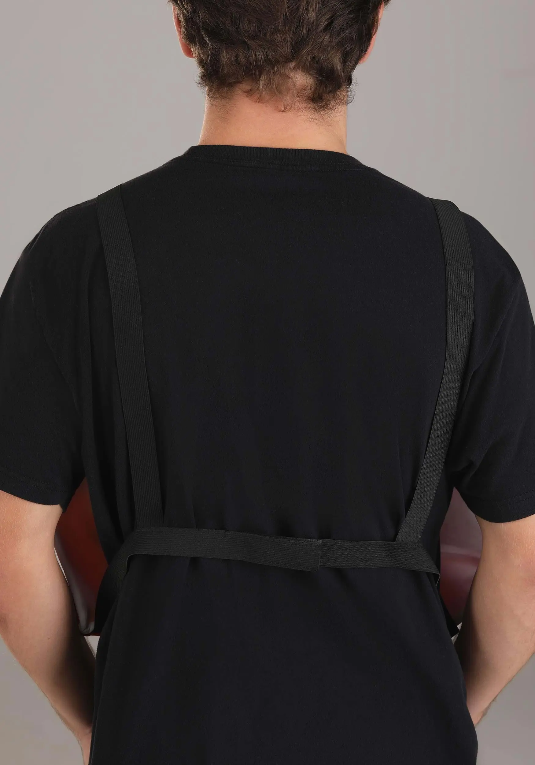 - Elastic shoulder straps & belt that closes at back w/ hook & loop fastener