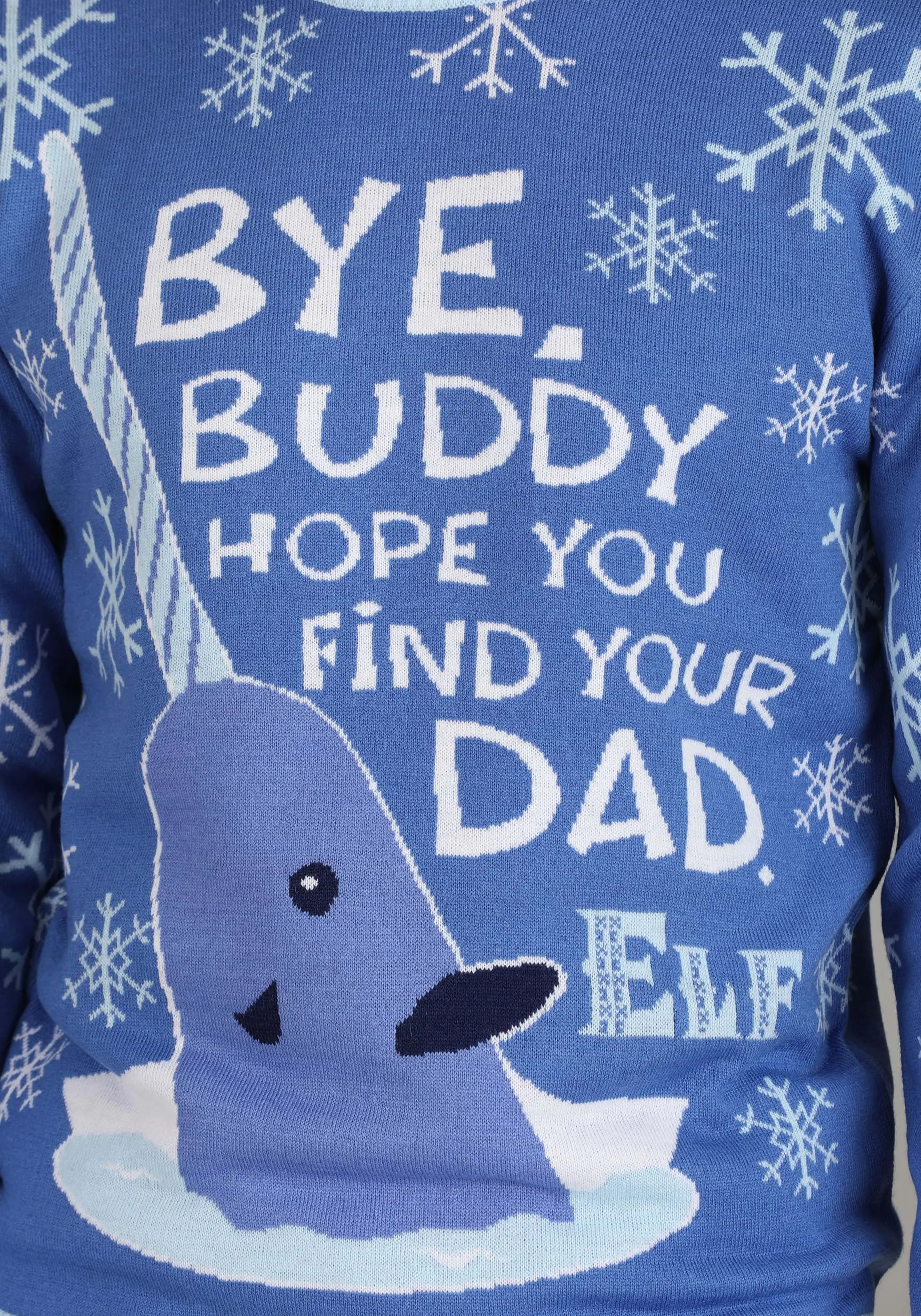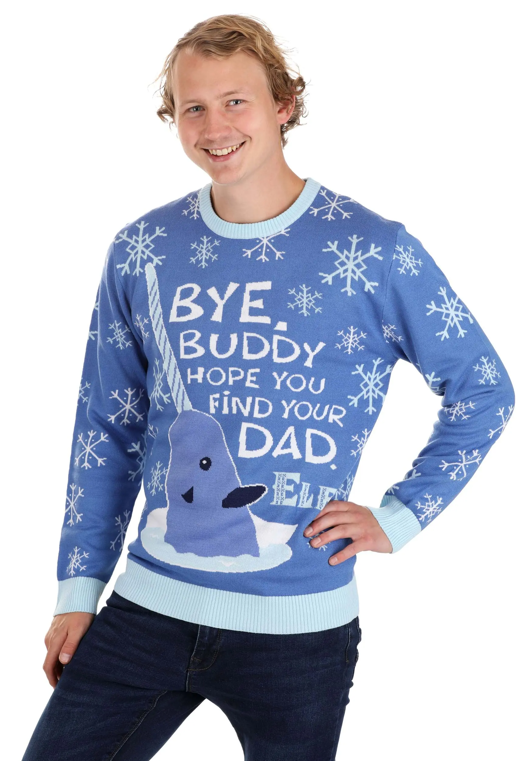 Adult Bye Buddy Narwall Blue Ugly Christmas Sweater