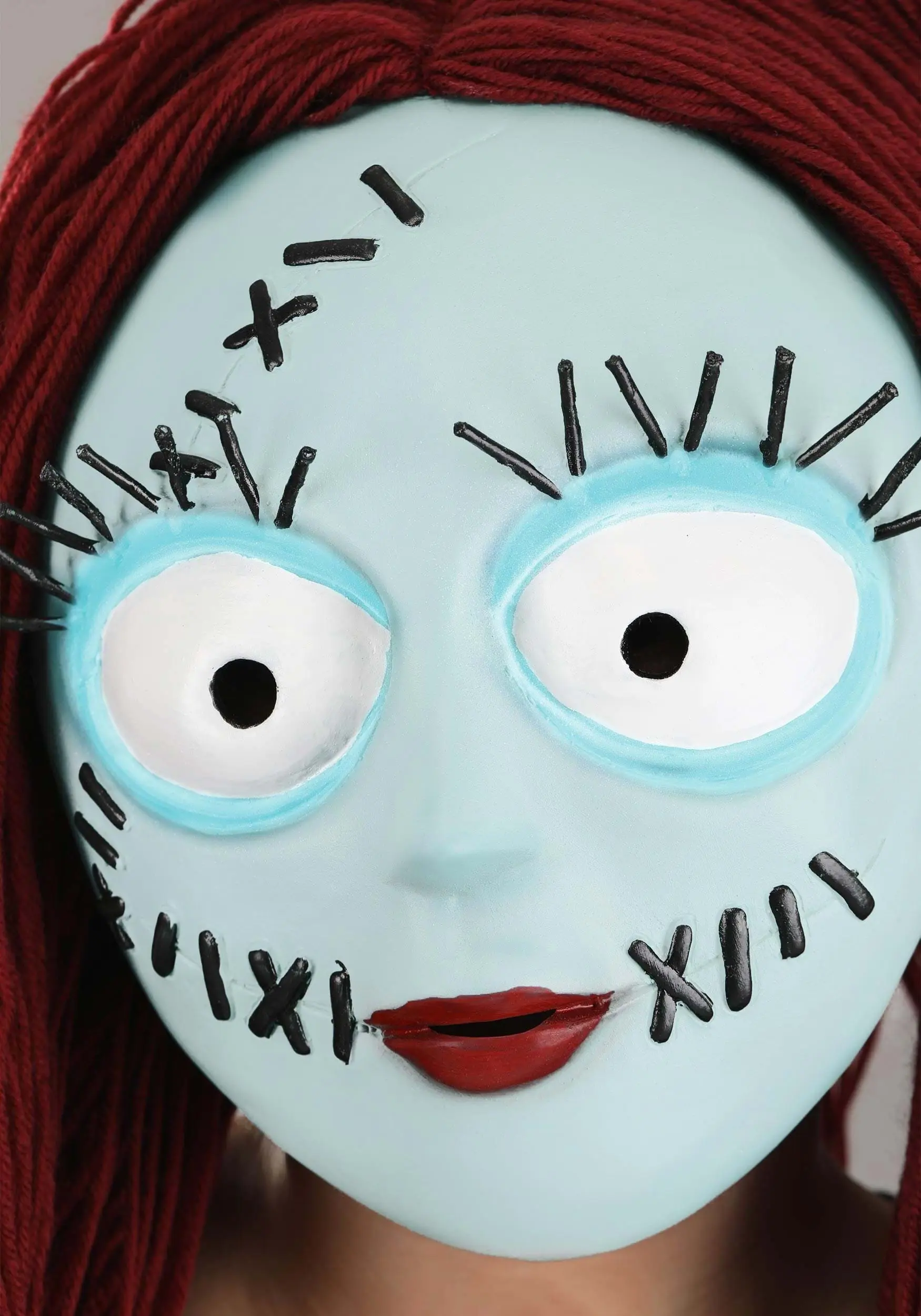- Back of mask has mesh panel covered with dark red yarn “hair” that covers back & sides of head