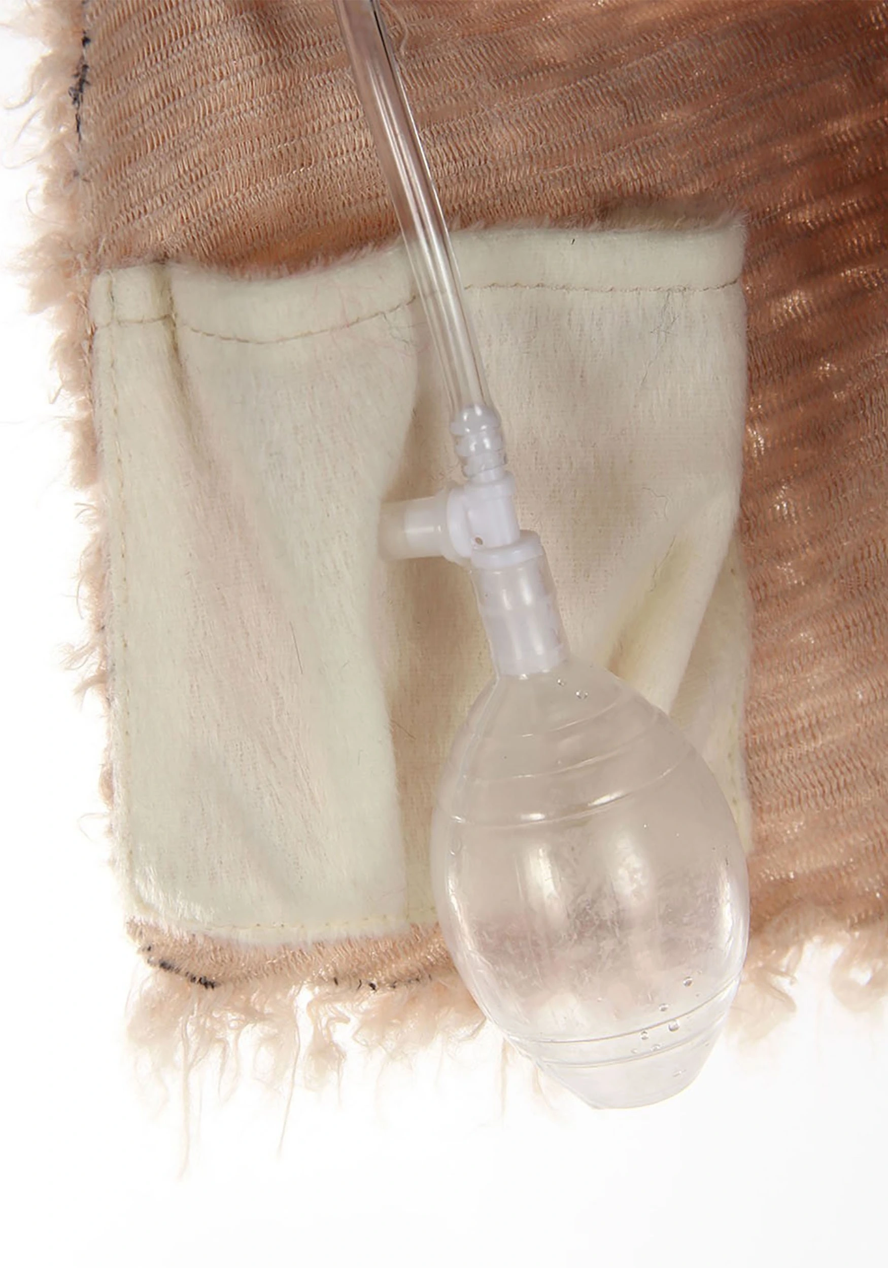 - When bulb is filled w/ water, squeezing it sprays water from muzzle of hat