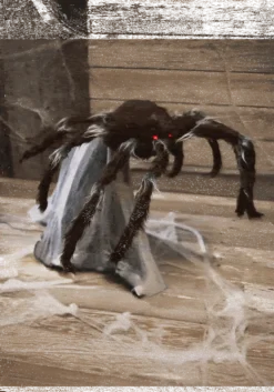 - Faux-fur-covered spider’s legs are poseable up to 42″ span