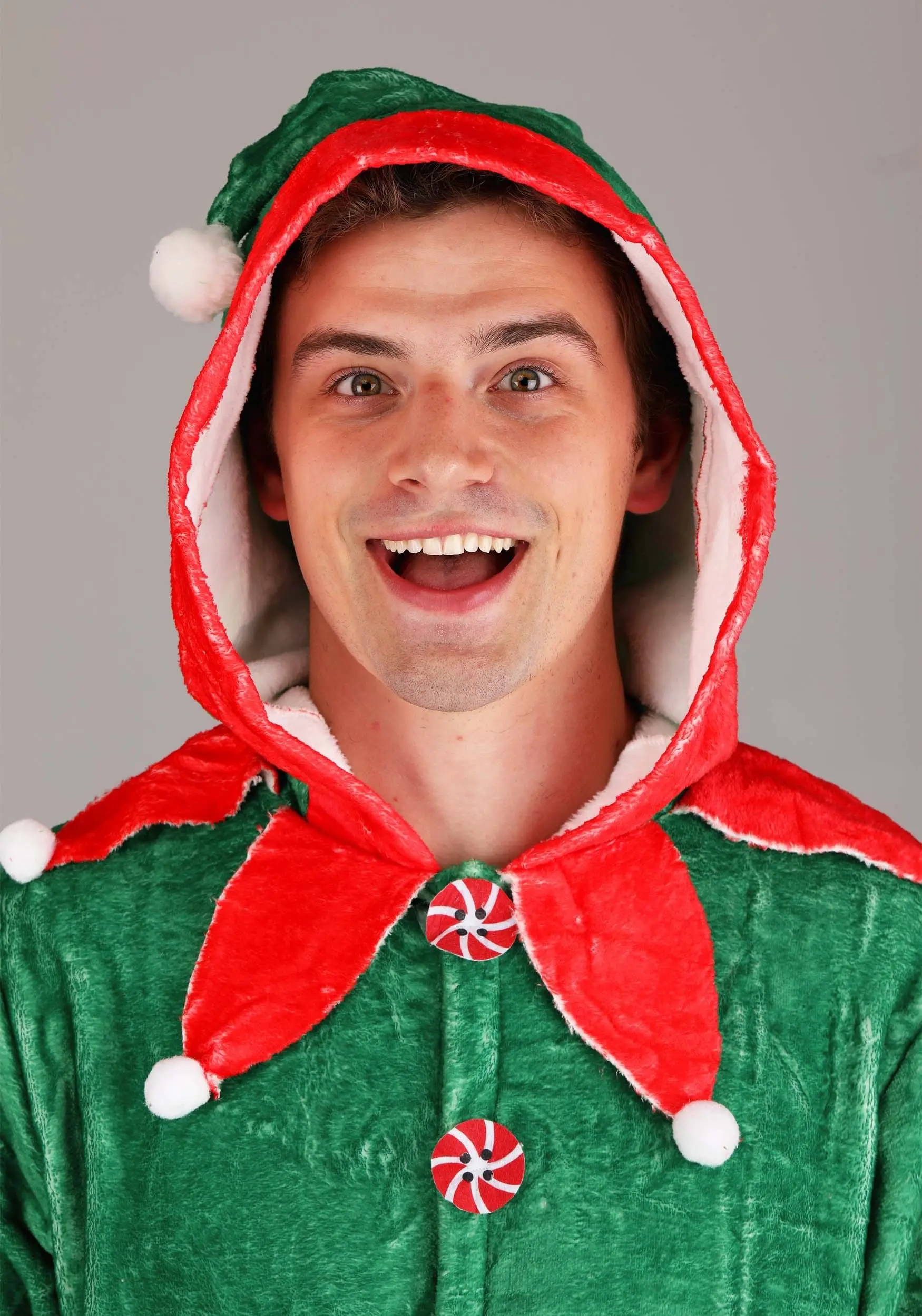 This is an exclusive Adult Elf Jumpsuit Costume.