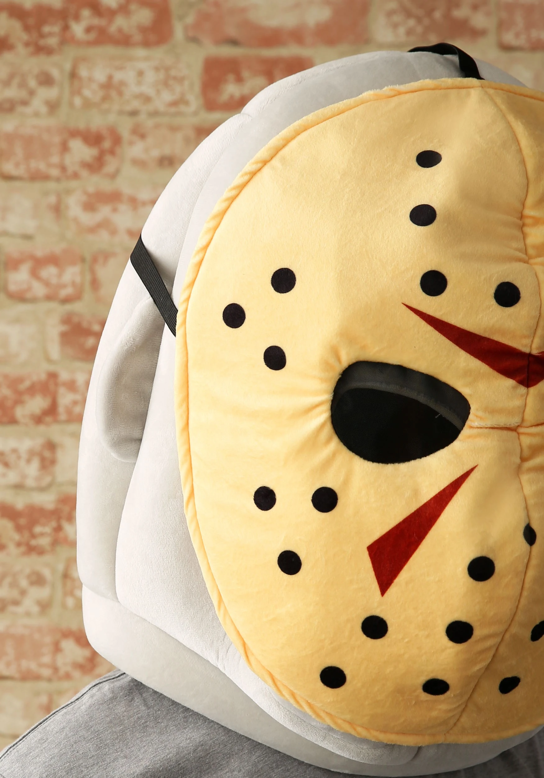 - Hockey mask has elastic straps around back & over top of mascot head
