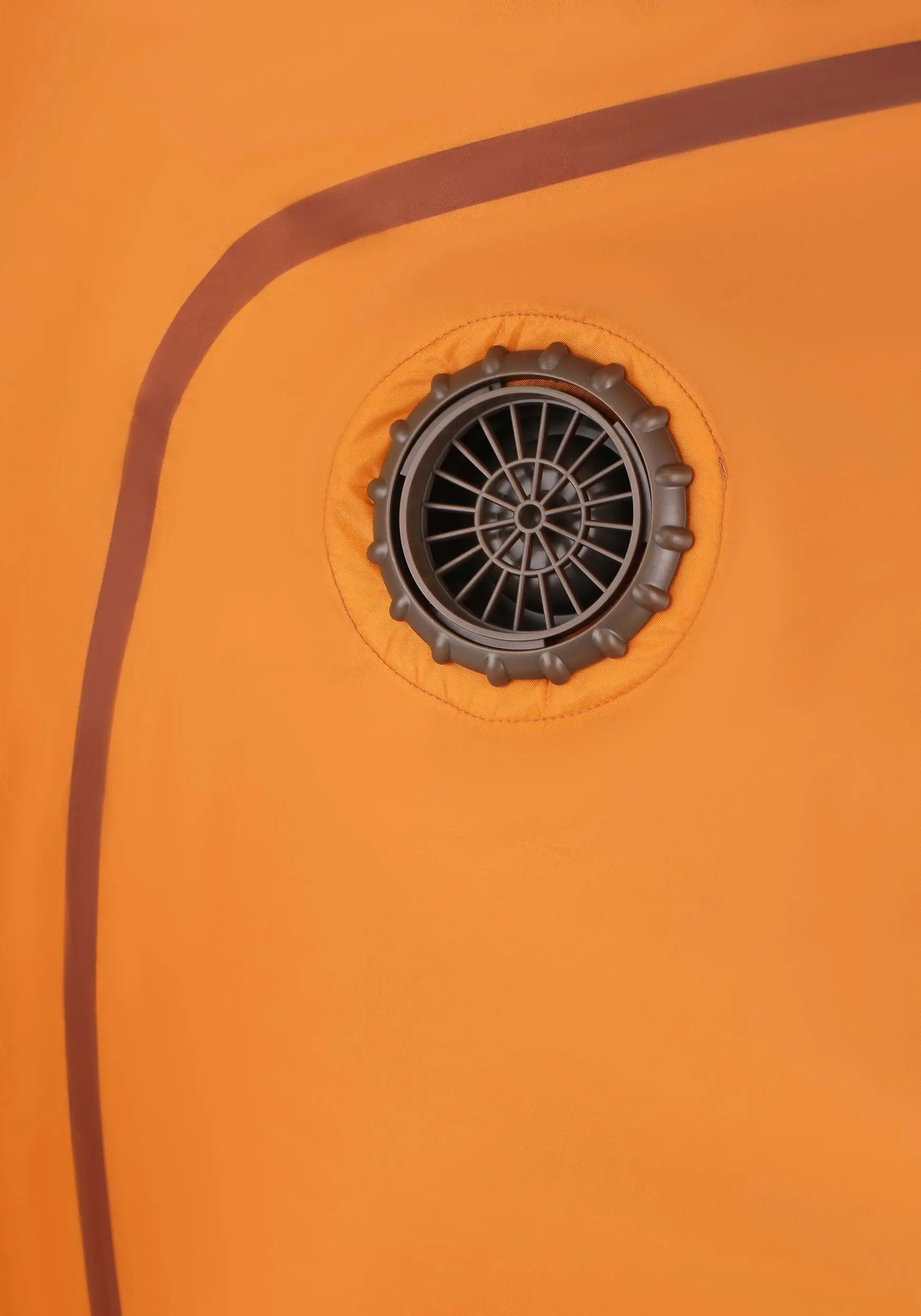 - Jumpsuit also has attached legs and foam boot covers w/ elastic bands for under shoes