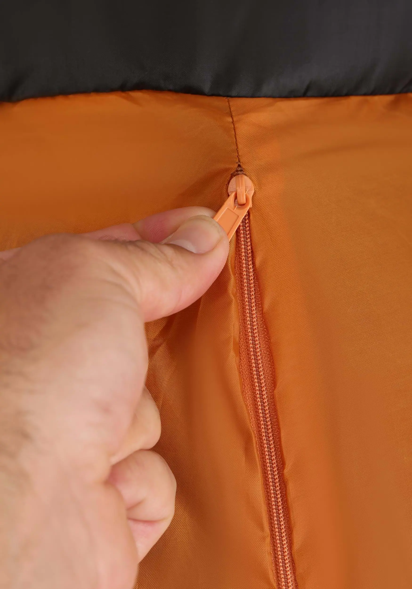 - Jumpsuit has center back zipper elastic and wrists and knees
