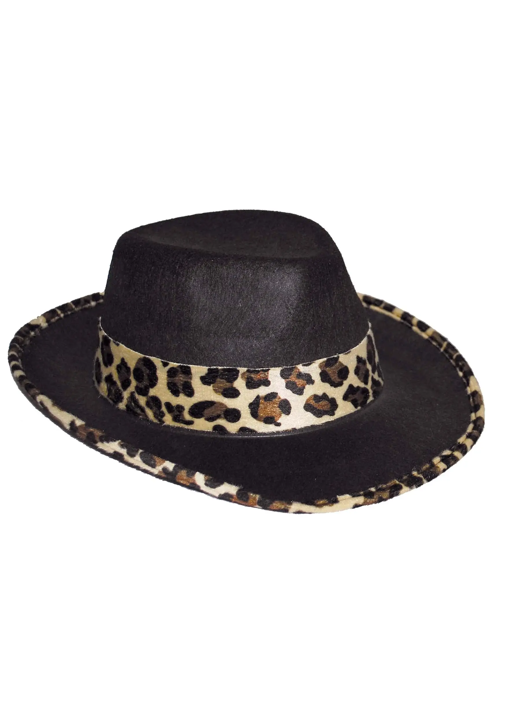 Leopard Trim Black Velvet Pimp Hat