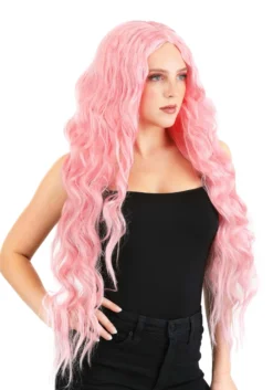 This is an exclusive Women’s Light Pink Long Wavy Wig.