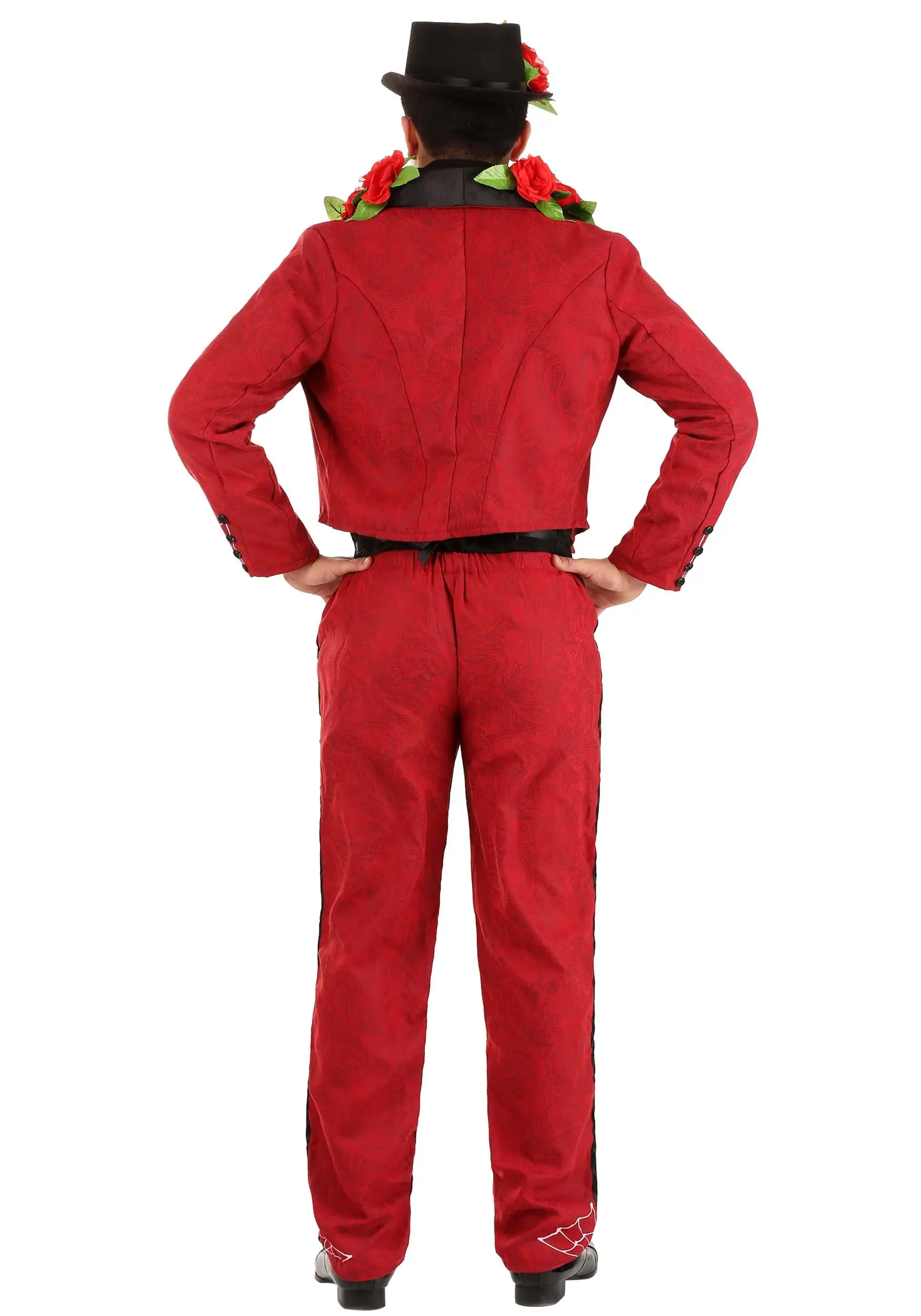 The celebration will only just be getting started when you show up decked out in this ghastly exclusive ensemble. The jacket and matching pants feature stylish patterns in the red suede and spider web accents for extra spooky flair. The decorative roses come attached to the jacket lapels and hat brim, and always stay looking fresh, year after year. The party is even more fun when you have someone in our matching Women’s Day of the Dead Costume celebrating with you! If you want to complete the look, make sure to check out our makeup kits (sold separately) to customize your style!