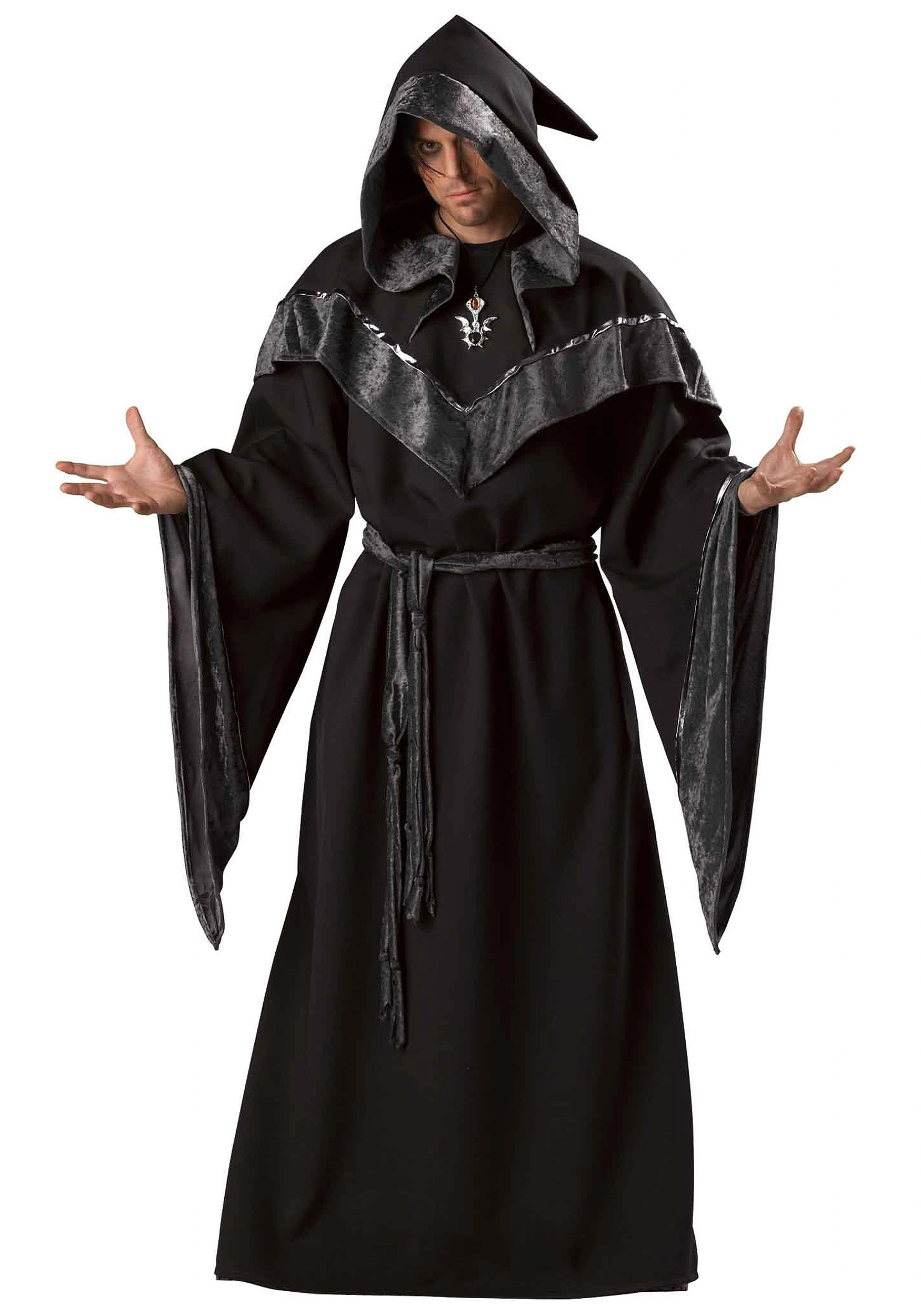 It doesn’t take long, though, to completely give into the dark side once you’ve had a taste of it. Another part of wielding such wicked power that makes it so addictive is the wardrobe. Dark wizards get to wear much cooler robes than the lame-looking rags good little wizards wear. The flowing, hooded robe included with this costume is made of luxurious grey velvet, and the fashionable silver trim gives it a mystical quality. It also comes with a matching medallion, to help you channel your sinister powers. You can decide for yourself if being a dark sorcerer is easier than being good, but after wearing this costume, you just may find out the darkness is more fun!