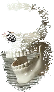 - Cord loop on top of skull for hanging