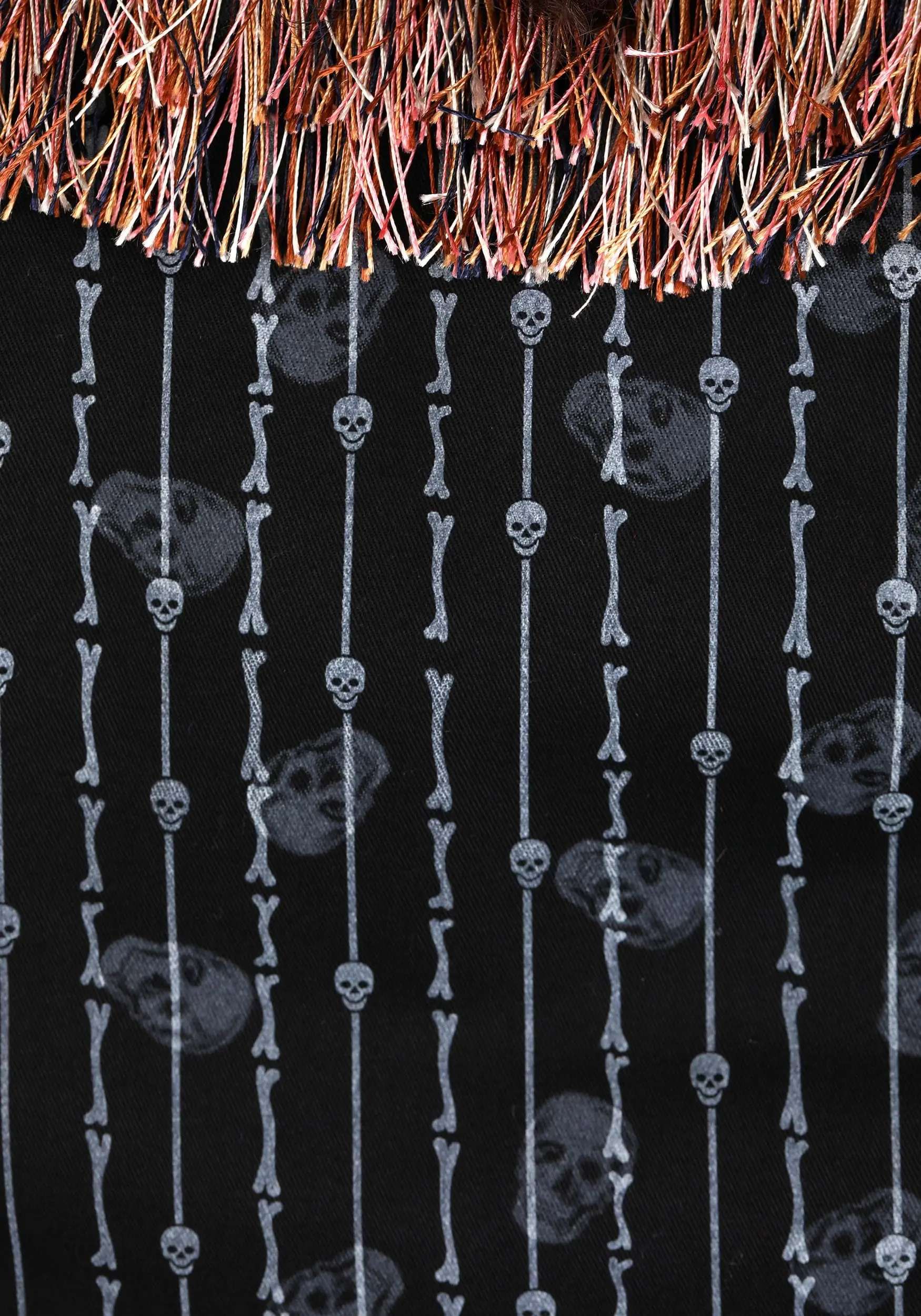 - Skull patterned jacket w/ fringe along the collar and lapels and skull front closure