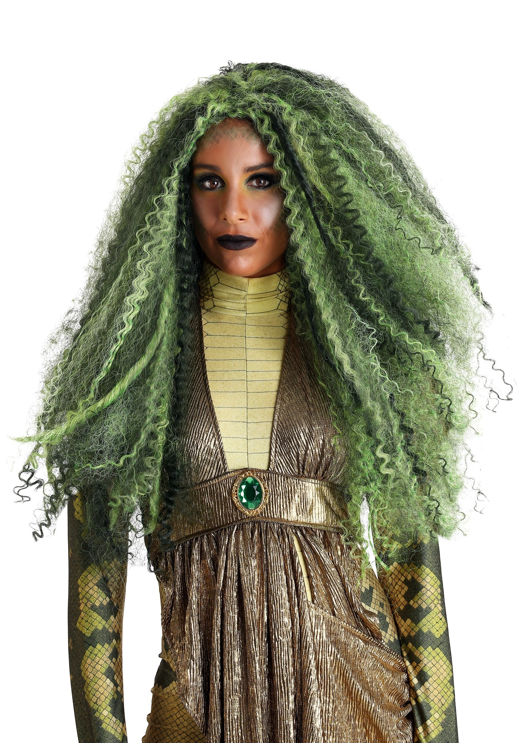 This Made-by-Us green wig is a stylish interpretation of Medusa’s legendary look. The long, layered curls make an immediate impact with shades of green and black strands. It turns out, having hair with attitude can be a pretty stunning look!